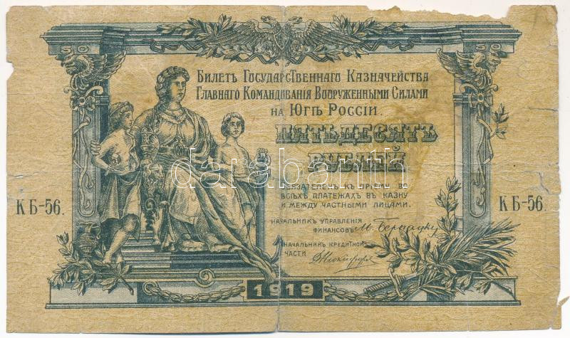 Orosz Polgárháború / Dél-Oroszország / Gyenyikin és Wrangel Hadserege ... https://www.darabanth.com/en/479-Online-auction/479.0/Numismatics/Worldwide-banknotes~1500015/Orosz-Polgarhaboru-Del-Oroszorszag-Gyenyikin-es-Wrangel-Hadserege-1919-50R-T-G-folt-~II3264550