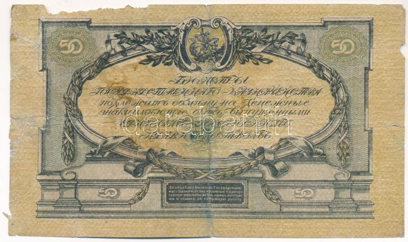 Description: Orosz Polgárháború / Dél-Oroszország / Gyenyikin és Wrangel Hadserege 1919. 50R T:G folt, szakadás, anyaghiány