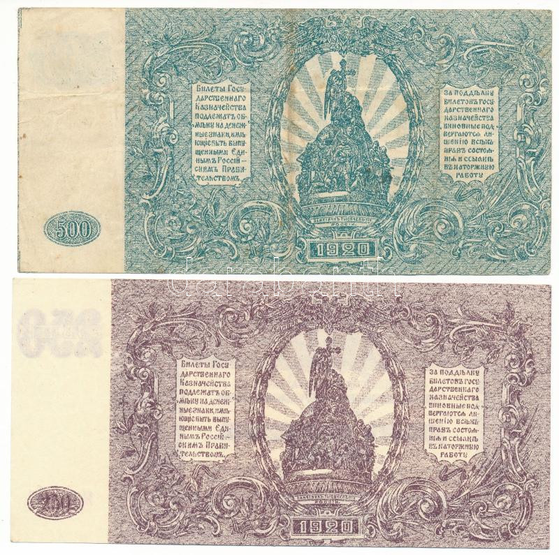Description: Orosz Polgárháború / Dél-Oroszország / Wrangel Hadserege 1920. 250R + 500R T:VF,F tűlyukak