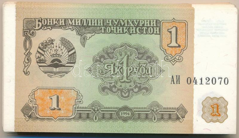 Tajikistan 1994. 1 Rouble (60x) with consecutive serials C:UNC-AU some XF