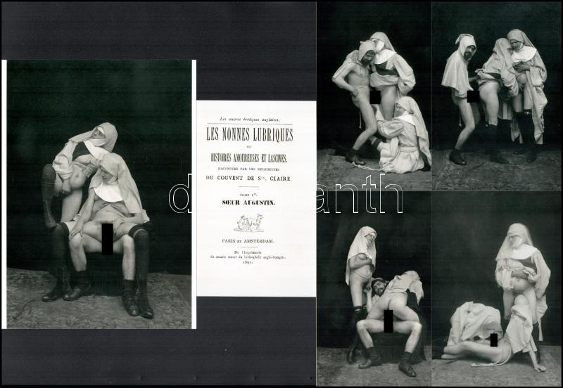 Description: 1891 Buja apácák történeteit elmesélő könyv fotóillusztrációi nyomán készült 5 db modern nagyítás, hozzáadva az eredeti mű belső címlapját ábrázoló képet, 21x15 cm és 15x10 cm