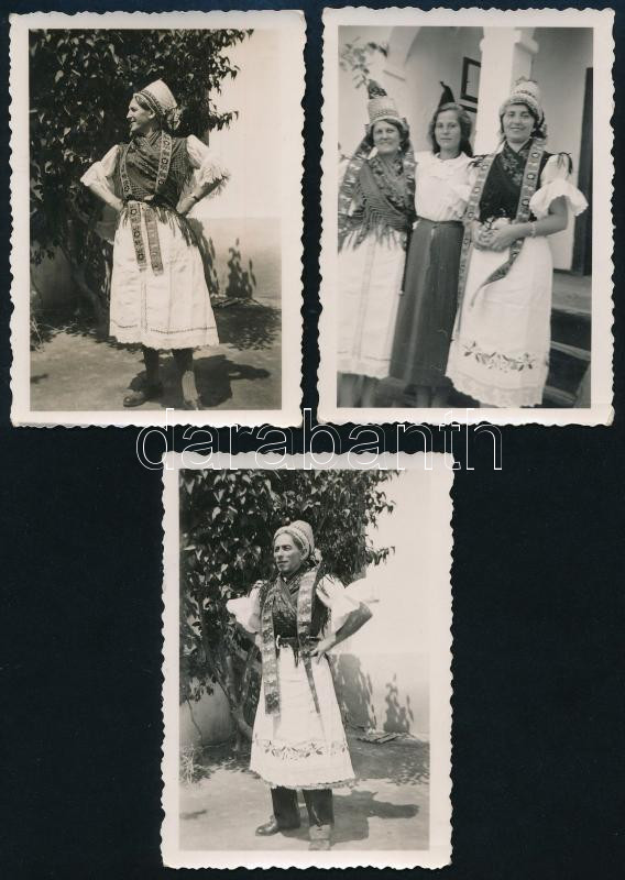 1937 Nők népviseletben, 3 db fotó, 9×6 cm