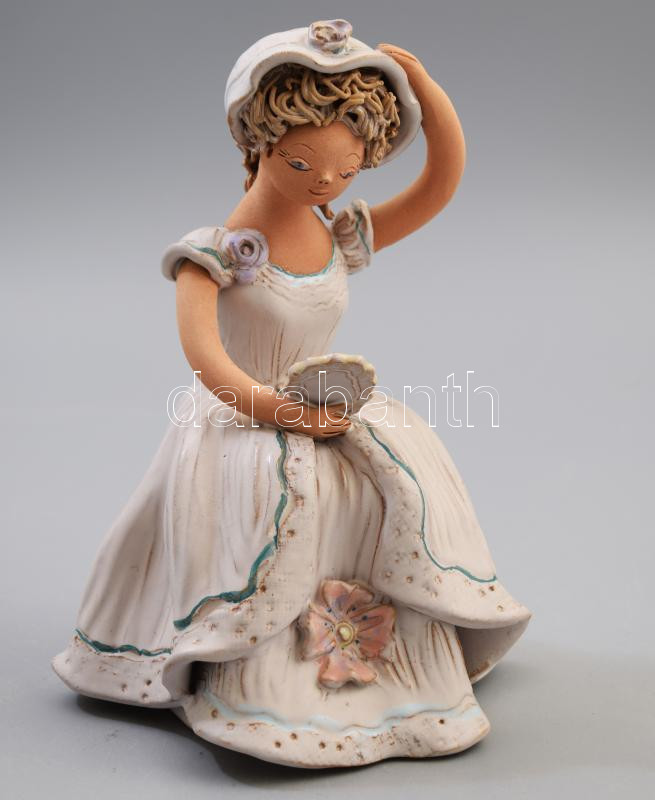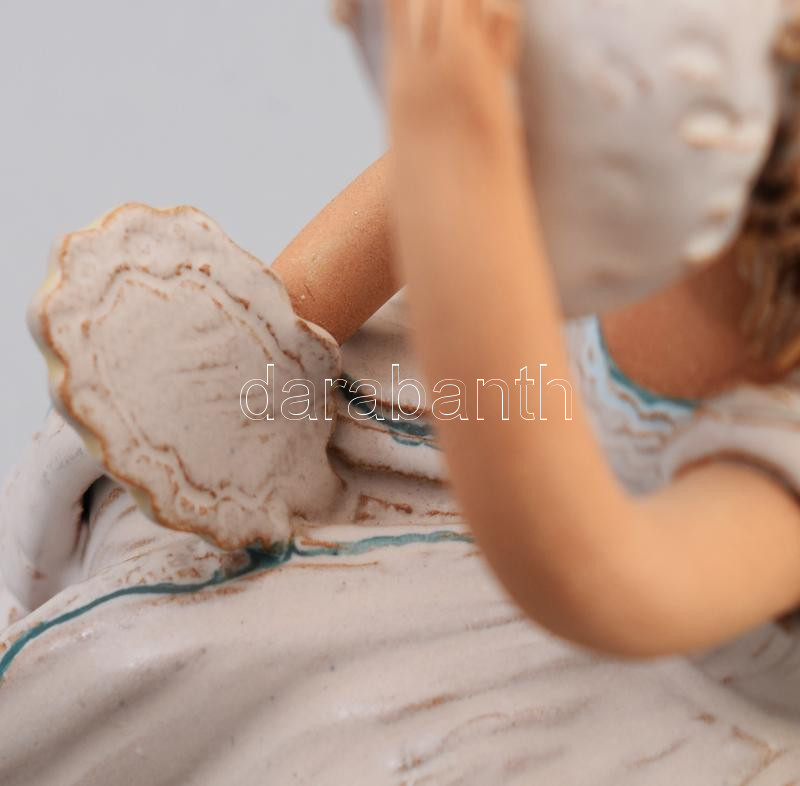 Győrbíró Enikő (1932-1999): Lány, tükörrel, kerámia figura Kézzel fest...