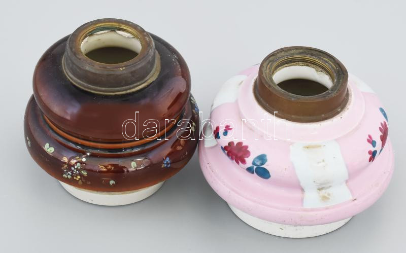2 darab antik petróleumlámpa porcelánbetét, m: 11-12 cm