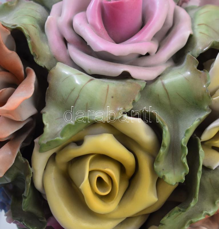 Herendi virágos váza. Kézzel festett, jelzett, sérülésekkel, lepattaná...