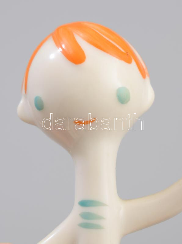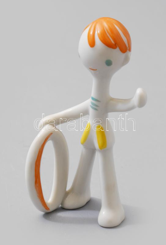 Hollóházi fiúcska karikával. Kézzel festett, jelzett, hibátlan terv: Őz-Szabó Antónia. 9 cm