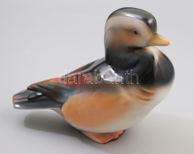 Hollóházi porcelán kacsa dísz, kézzel festett, jelzett, 23x19 cm