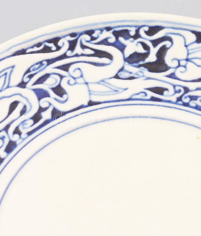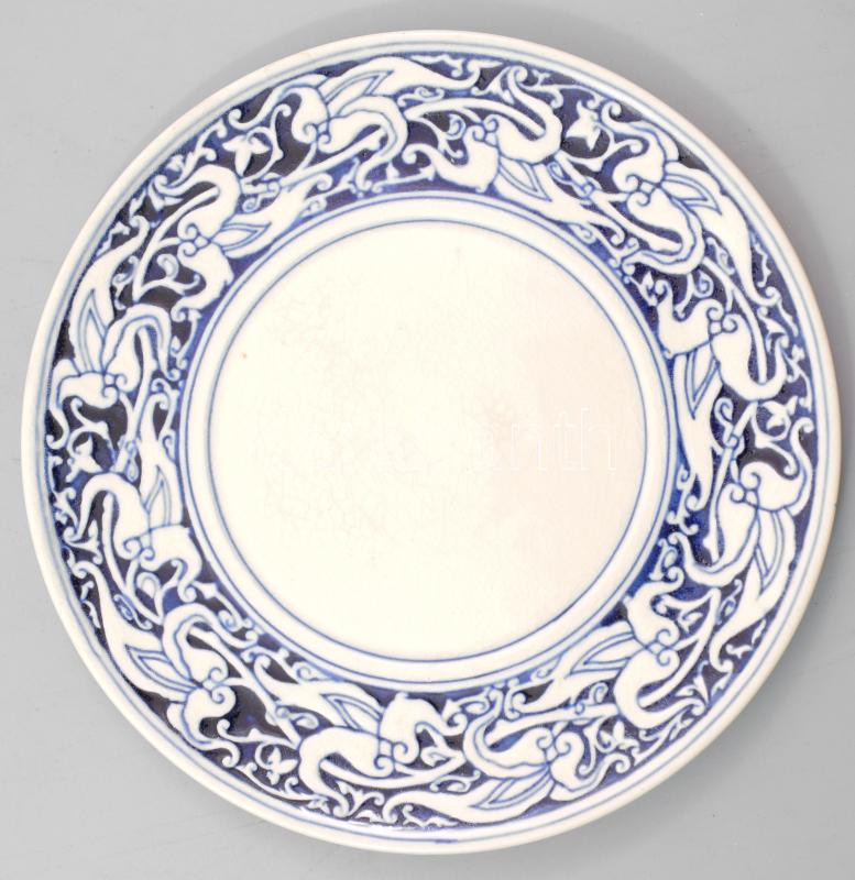 Zsolnay tányér. cca 1870, korongozott mázas kőedény, máz alatti kobalt...