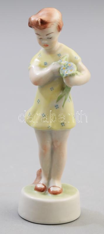 Zsolnay virágszedő lány, kézzel festett porcelán. Jelzett, hibátlan, m...
