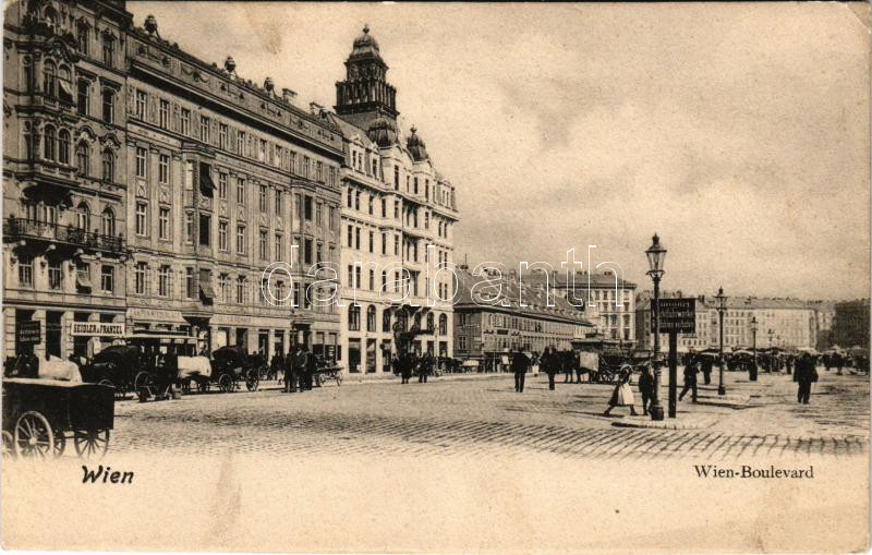 Wien, Vienna, Bécs; Boulevard, Seidler & Franzel, Lampen Niederlage, Gebrüder Brünner. B.K.W.I. No. 43. / street, shops (EK)