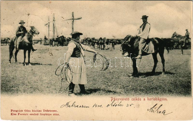 https://www.darabanth.com/en/479-Online-auction/479.0/Postcards/Hungary~2000005/1900-Hortobagy-panyvaveto-csikos-Pongracz-Geza-kiadasa-Kiss-Ferenc-eredeti-fenykepe-utan~II3271256