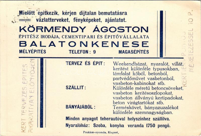 1932 Balatonkenese, Kenese; Körmendy Ágoston építész irodája, cementipari és építővállalata reklám (EK)