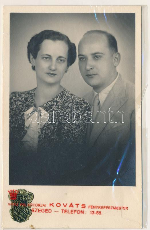 1939 Szeged, Házaspár. Foto Székely - Vitéz Felsőtorjai Kováts fénykép...