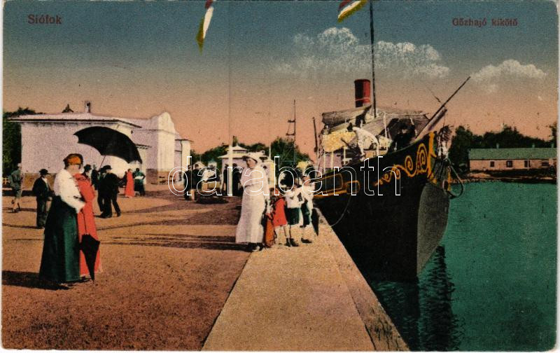 Siófok, Gőzhajó kikötő + "MAGYAR KÖZTÁRSASÁG 1918. november 16. Budape...