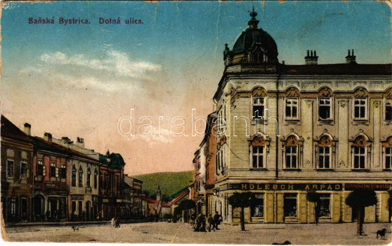 Besztercebánya, Banská Bystrica; Dolná ulica / utca, Holesch Árpád és ... https://www.darabanth.com/en/479-Online-auction/479.0/Postcards/Slovakia~2000007/Besztercebanya-Banska-Bystrica-Dolna-ulica-utca-Holesch-Arpad-es-Keppich-Ernestin-utoda~II3267724