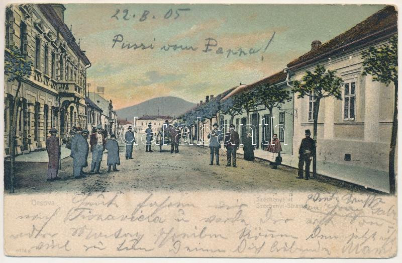 1905 Orsova, Széchenyi út, gyógyszertár / street, pharmacy (EK)