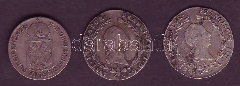 Ausztria kis tétel 5Kr Ag 1818A + 1820A T:2/3.3+ + 6Kr Ag 1849A T:3+