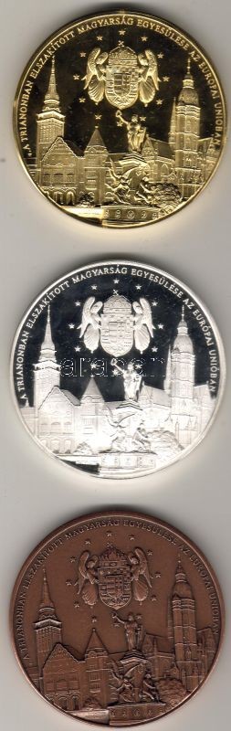 "Nemzetegyesítési éremsorozat" 3 klf db Ag 124,4g T:PP + aranyozott Br...