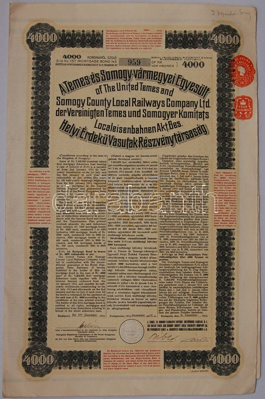 https://www.darabanth.com/en/48-Online-auction/48.0/Numismatics/~142/1913-Temes-es-Somogy-varmegyei-Egyesult-Helyi-Erdeku-Vasutak-Rt-4000-K-kotveny-Vereignte-L~II67725