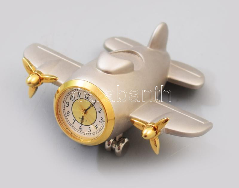 Malév repülőgép alakú asztali óra, 6x7 cm