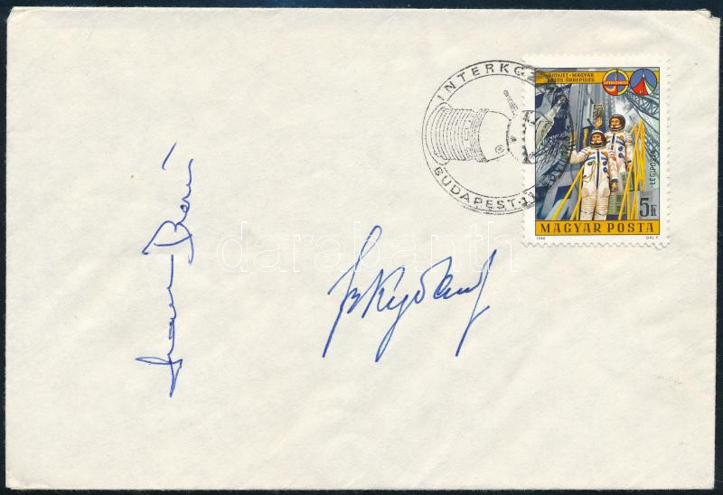 1980 Farkas Bertalan (1949-) és Valerij Kubaszov (1935-2014) űrhajósok aláírása borítékon