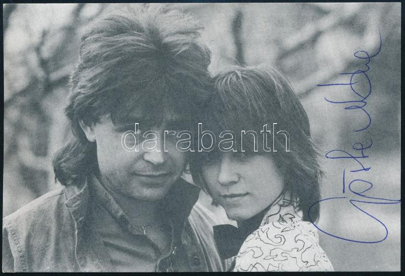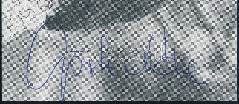 Görbe Nóra (1956- ) színésznő, a Linda c. tévésorozat főszereplőjének autográf aláírása őt ábrázoló nyomtatványon, 9,5x14 cm