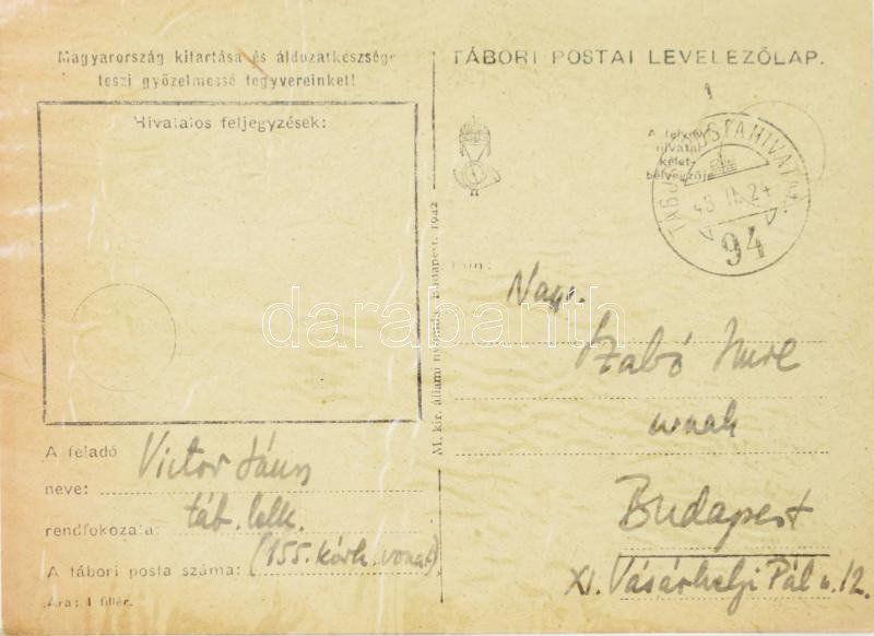 Victor János (1888-1954) a világ igaza (Yad Vasem), református lelkész, teológus, filozófiai doktor, a Budapesti Református Teológiai Akadémia tanára (1925-1932, 1949-1954) képeslapja, könyv ügyben, Szabó Imre, az Exodus kiadó vezetőjének