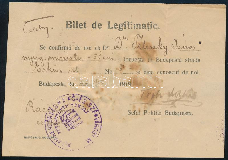 https://www.darabanth.com/en/480-Online-auction/480.0/Art-and-other-collectibles/Documents~500020/1919-Dr-Teleszky-Janos-1868-1939-volt-penzugyminiszter-MTA-tag-nevere-szolo-roman-nyelvu~II3275445