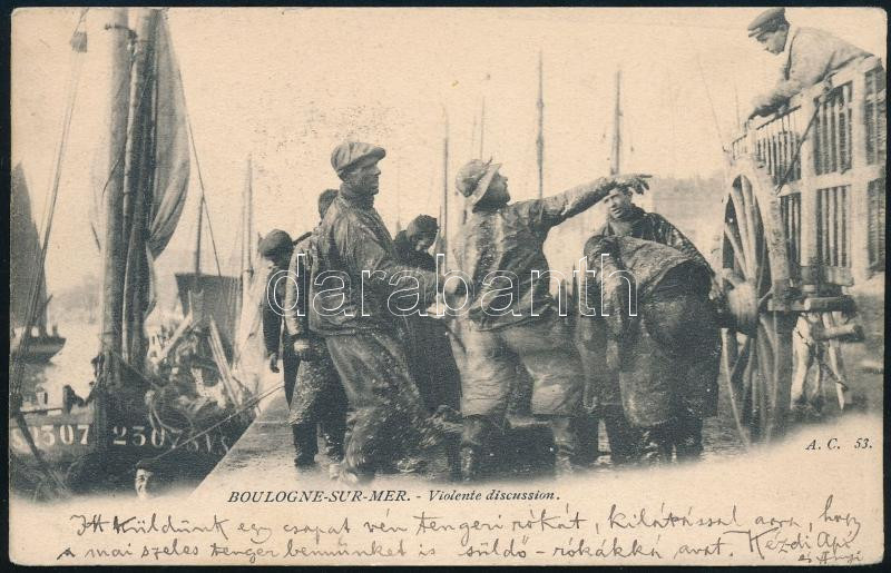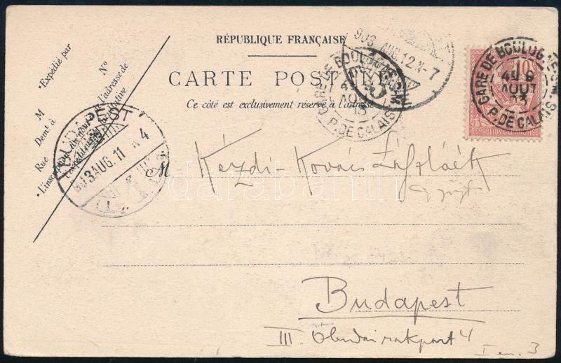 1903 Kézdi-Kovács László (1864-1942) festőművész, műkritikus humoros hangvételű autográf sorai Boulogne-i képeslapon