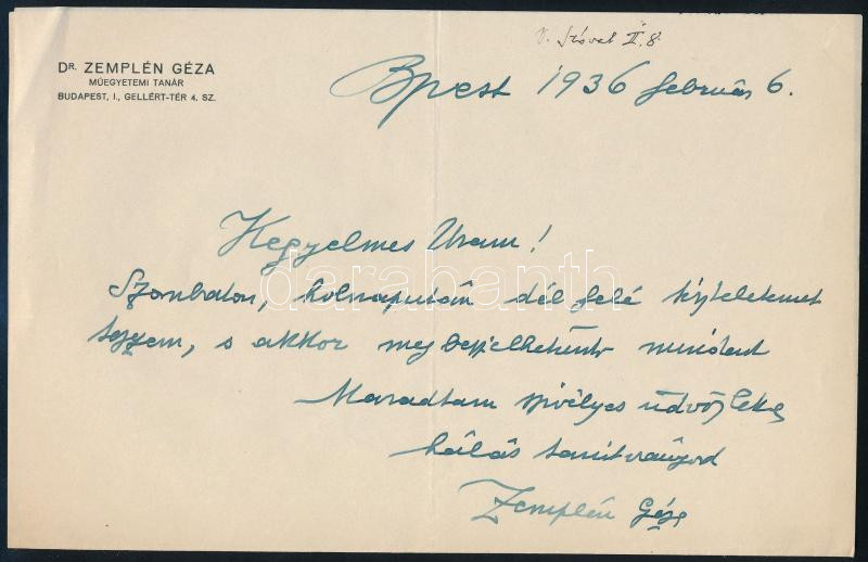 1936 Zemplén Géza (1883-1956) Kossuth-díjas vegyész, Műegyetem tanára autográf sorai, fejléces papírján, aláírásával.