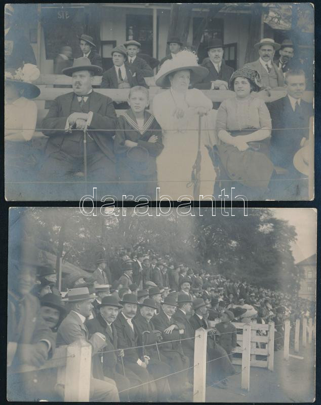 Description: cca 1913 Horváth Gyula (1888-1977) válogatott labdarúgó, hátvéd, a Törekvés SE játékosának hagyatékából származó fotók, 2 db: Törekvés SE Bp. X. ker., Halom utcai sportpályáján zajló mérkőzés nézőit ábrázoló fotólapok (az 1913/14-es bajnoki szezonban bronzérmet szerzett a csapat), 14x9 cm
