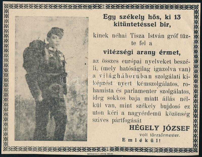 https://www.darabanth.com/en/480-Online-auction/480.0/Art-and-other-collectibles/Printed-Materials~1500018/cca-1920-Hegely-Jozsef-arany-vitezsegi-ermes-szekely-hos-kemszolgalatos-rohamista-es-parlamenter-~II3281508