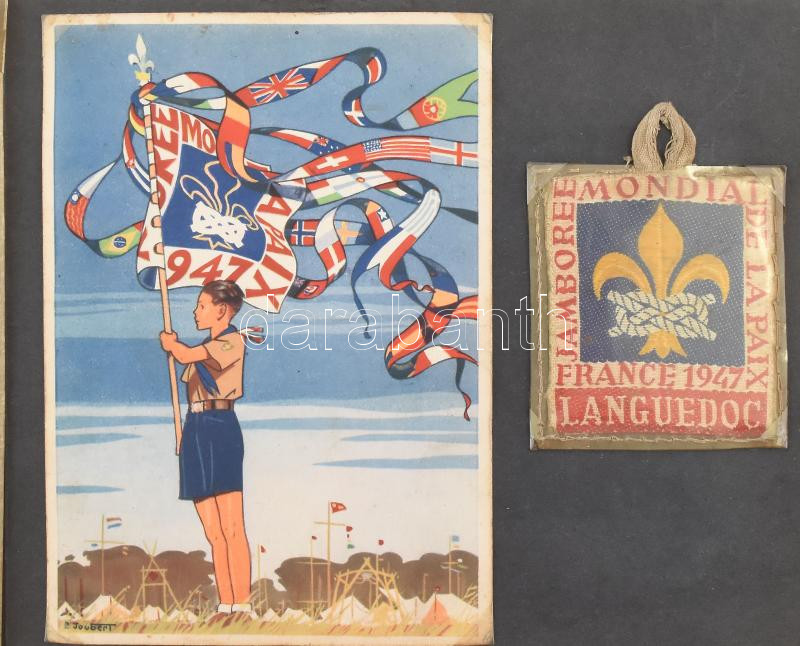 1947 Franciaország, cserkész jamboree albuma, felvarróval, képeslapokk... https://www.darabanth.com/en/480-Online-auction/480.0/Art-and-other-collectibles/Scout~1500011/1947-Franciaorszag-cserkesz-jamboree-albuma-felvarroval-kepeslapokkal-cserkesztaborban-keszult~II3281965