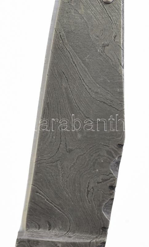 Damaszkuszi acél bicska, damaszkuszi mozaikos pengével, h: 22 cm