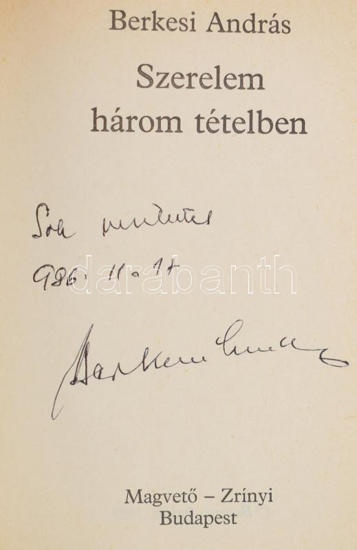 Berkesi András: Szerelem három tételben. A szerző Berkesi András (1919... https://www.darabanth.com/en/480-Online-auction/480.0/Books/Books-Other-rarities~2000031/Berkesi-Andras-Szerelem-harom-tetelben-A-szerzo-Berkesi-Andras-1919-1997-iro-altal-DEDIKALT~II3279572