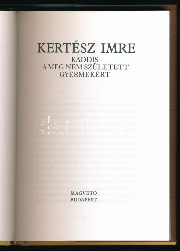 https://www.darabanth.com/en/480-Online-auction/480.0/Books/Books-Other-rarities~2000031/Kertesz-Imre-Kaddis-a-meg-nem-szuletett-gyermekert-Bp-en-Magveto-Kiadoi-egeszvaszon-kotes-~II3274008