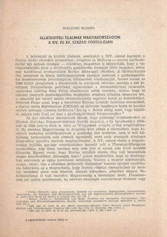 (Különlenyomat az Agrártörténeti Szemle 1983. évi 3-4. számából).