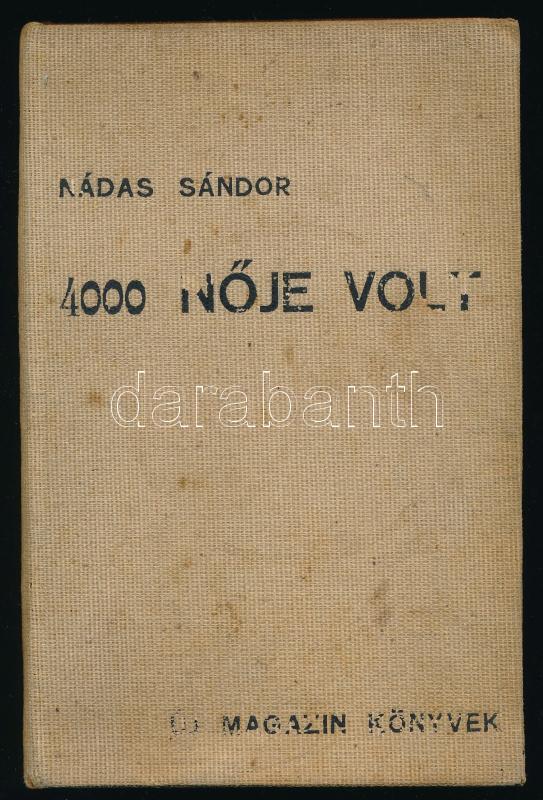 Nádas Sándor: 4000 nője volt... (Bp.), é.n., Balzac (Admiral-ny.), 190+(2) p. Kiadói egészvászon-kötés, viseltes állapotban, foltos borítóval, a hátsó borítón penészfoltokkal, részben szétváló fűzéssel.