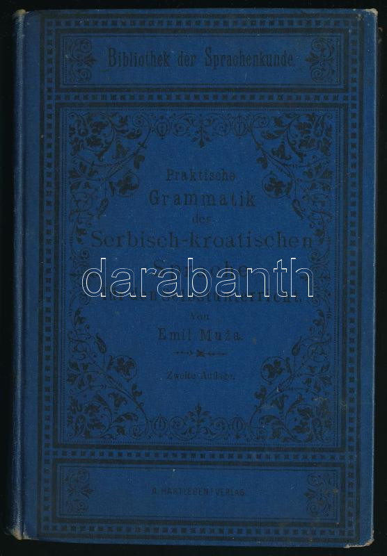 Description: Muža, Emil: Praktische Grammatik der Serbisch-kroatischen Sprache für den Selbstunterricht. Theoretisch-praktische Anleitung zur schnellen Erlernung durch Selbstunterricht. Wien-Pest-Leipzig, é.n., A. Hartleben's Verlag, VIII+183+(1) p. Kiadói egészvászon-kötés, festett lapélekkel, a borítón némi kopással, néhány kissé sérült lappal.