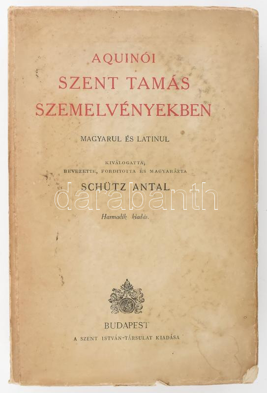 Schütz Antal: Aquinói Szent Tamás szemelvényekben magyarul és latinul.... https://www.darabanth.com/en/480-Online-auction/480.0/Books/Books-Social-sciences~1500028/Schutz-Antal-Aquinoi-Szent-Tamas-szemelvenyekben-magyarul-es-latinul-Kivalogatta-bevezette-~II3274105
