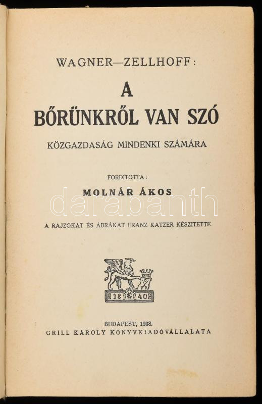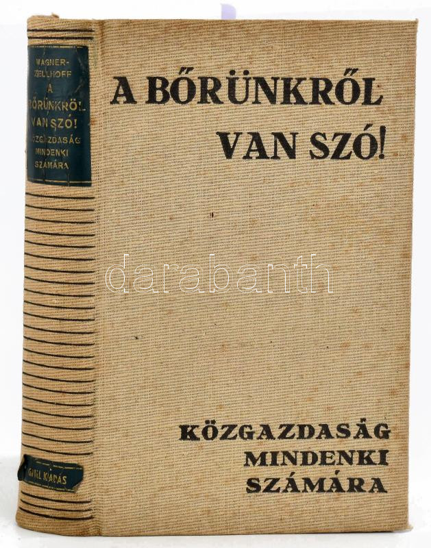 Description: Wagner - Zellhof: A bőrünkről van szó. Közgazdaság mindenki számára. Ford.: Molnár Ákos. A rajzokat és ábrákat Franz Katzer készítette. Bp., 1938, Grill Károly. Kiadói egészvászon-kötés, kopott, foltos borítóval.