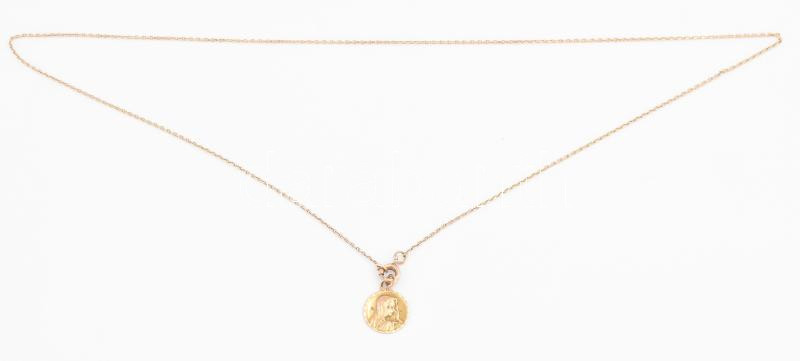 14K arany (Au) nyaklánc Szűz Mária medállal jelzett, 2,37 g,, 46 cm