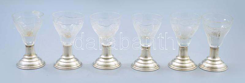 6 darab kristály italos pohár ezüst (Ag) talpazatban, jelzett, egyiken...