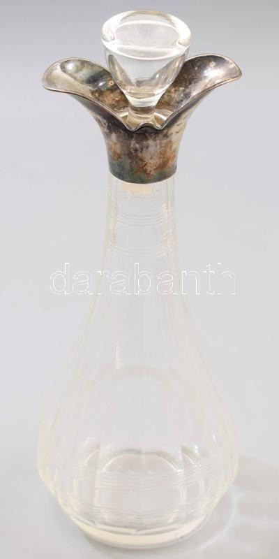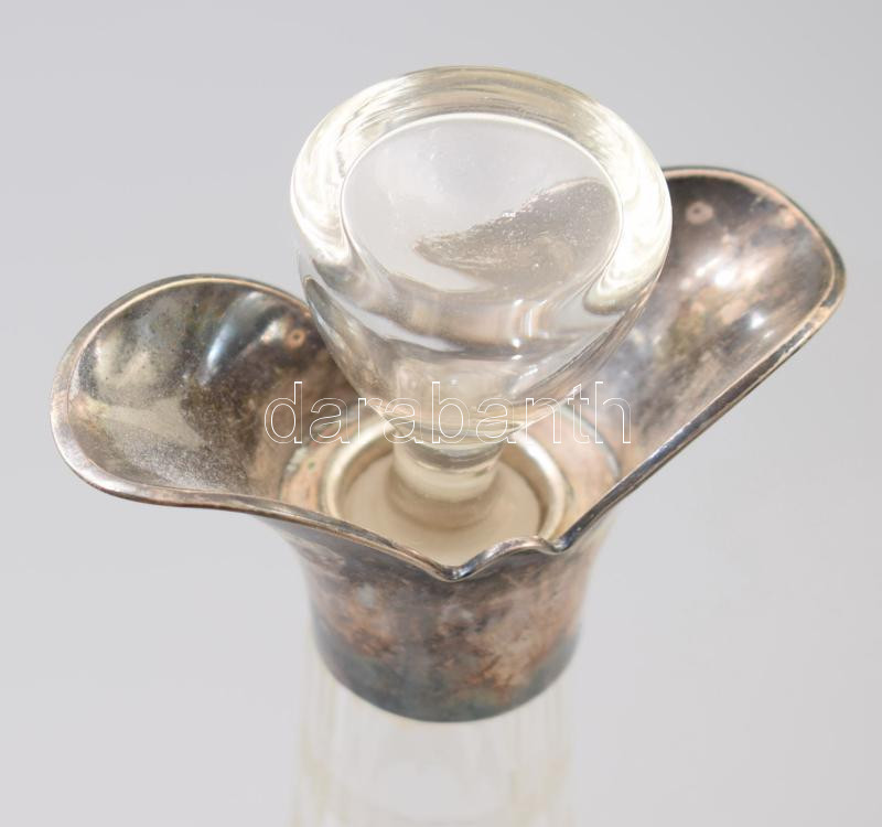 Szecessziós ezüst (Ag) karaffa. Dianás jelzéssel, jelzett, metszett üveg hibátlan 26 cm üveg dugóval