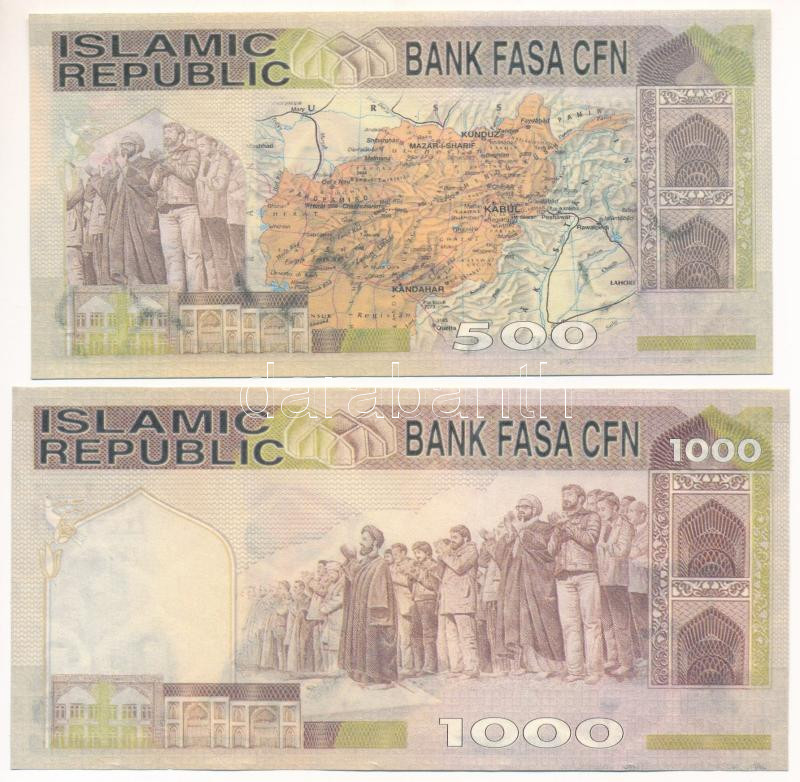 Description: Iszlám Köztársaság ~2005. 500-as és 1000-es címletű fantáziabankjegy vízjeles papíron T:AU