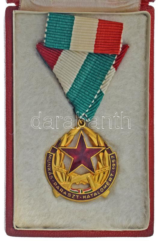 1957. "Munkás-Paraszt Hatalomért Emlékérem" aranyozott, zománcozott bronz kitüntetés mellszalagon, szalagsávval, eredeti tokban T:AU