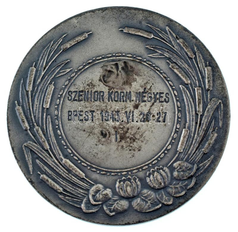 Berán Lajos (1882-1943) 1943. "Magyar Evezős Szövetség" kétoldalas, ezüstözött bronz díjérem, gravírozott "Szenior korm. négyes BPest 1943. VI. 26-27 - I." szöveggel (50mm) T:AU patina