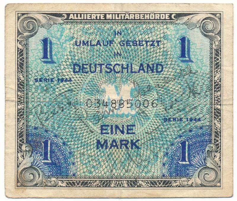 German Third Reich / Allied Occupation 1944. 1 Mark with with text written in pen on both sides C:F
