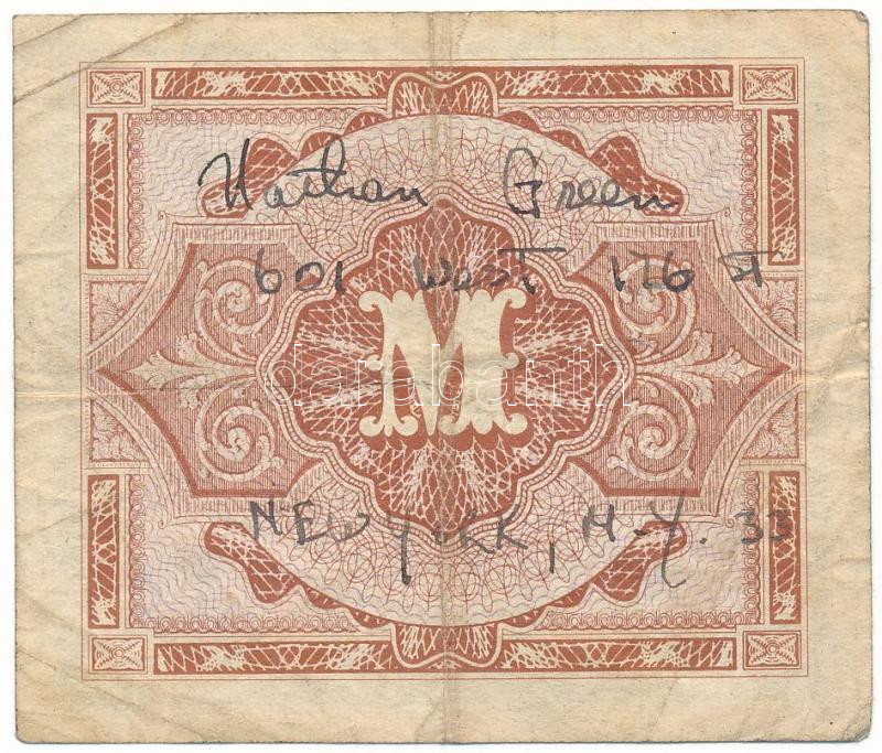 Description: Német Harmadik Birodalom / Szövetséges megszállás 1944. 1M mindkét oldalán tollal írt szöveggel T:F