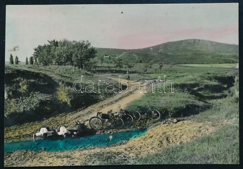 1940 Rózsika forrás, hátoldalon feliratozott fotó, kézzel színezett, 5...